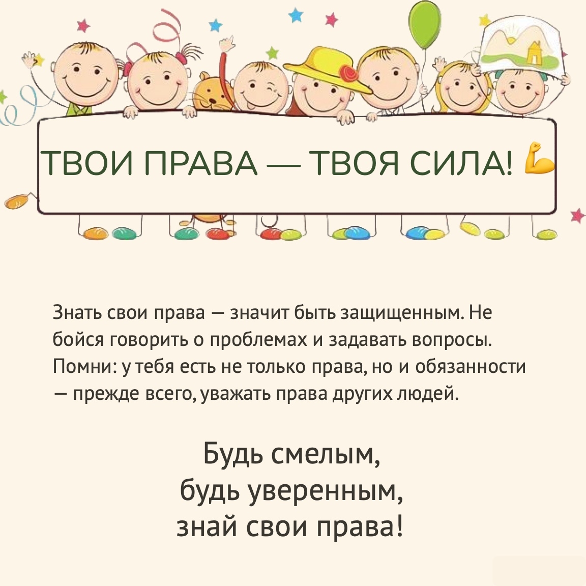 Чтобы вы могли разобраться в этом лучше, мы подготовили для вас информационные карточки с правами детей. Изучайте, задавайте вопросы и помните: закон на вашей стороне!
