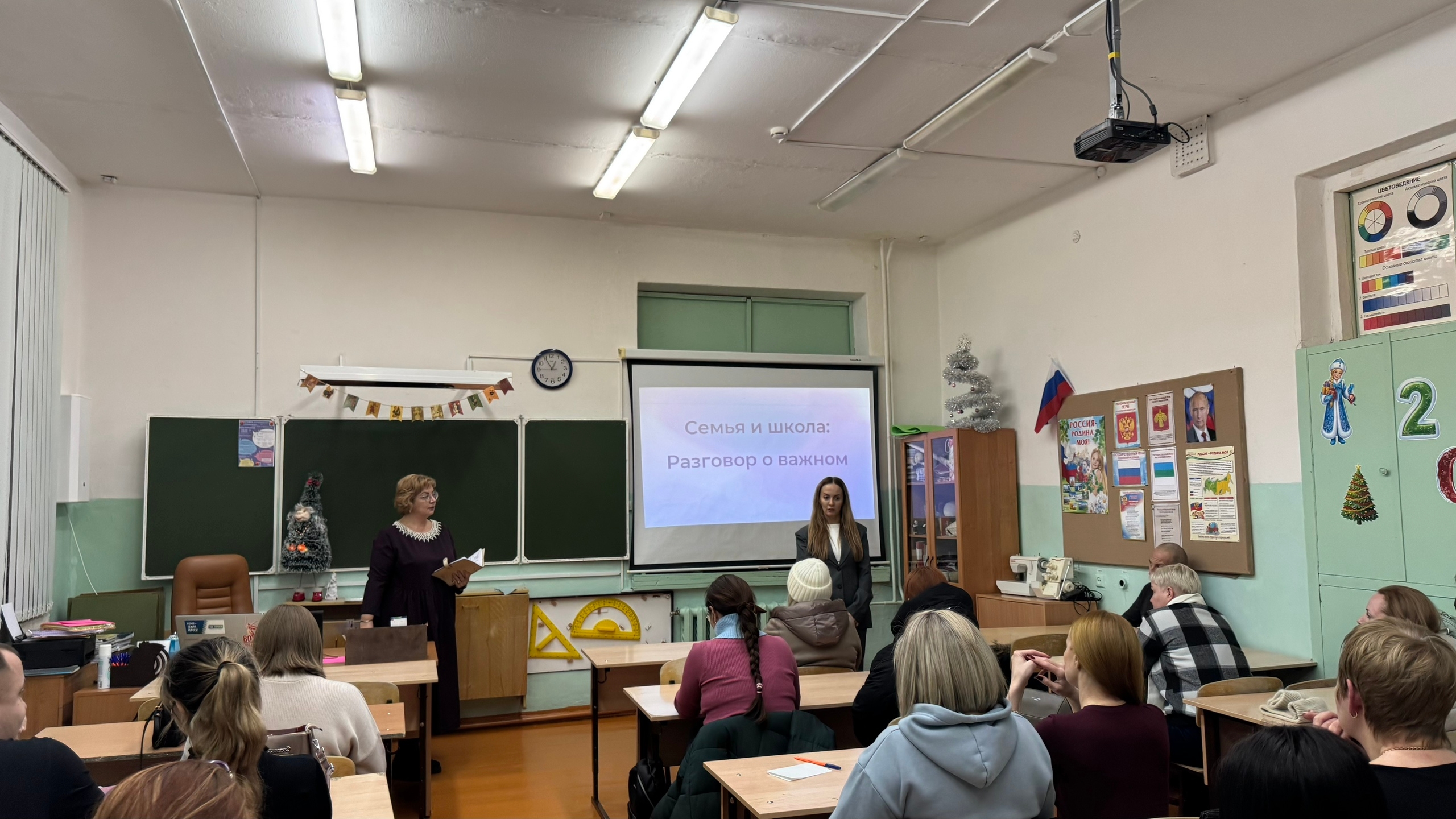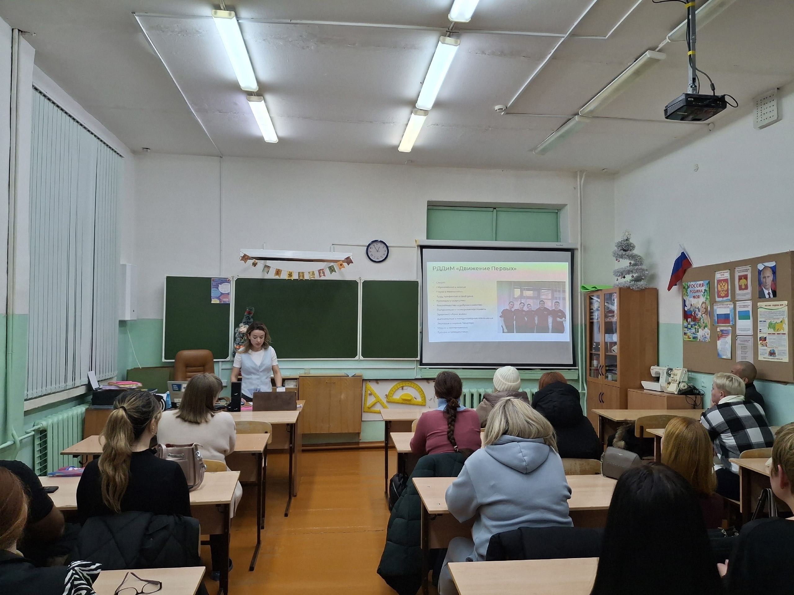Валерия Дмитриевна Шандринова, советник директора по воспитанию, выступила с сообщением на тему «Создание эффективной воспитательной среды во взаимодействии семьи и школы». Родителям были представлены актуальные воспитательные проекты, ценности и разнообразие внеурочной деятельности, а также напомнила о роли общешкольного родительского чата как удобного инструмента для построения крепкого сообщества.